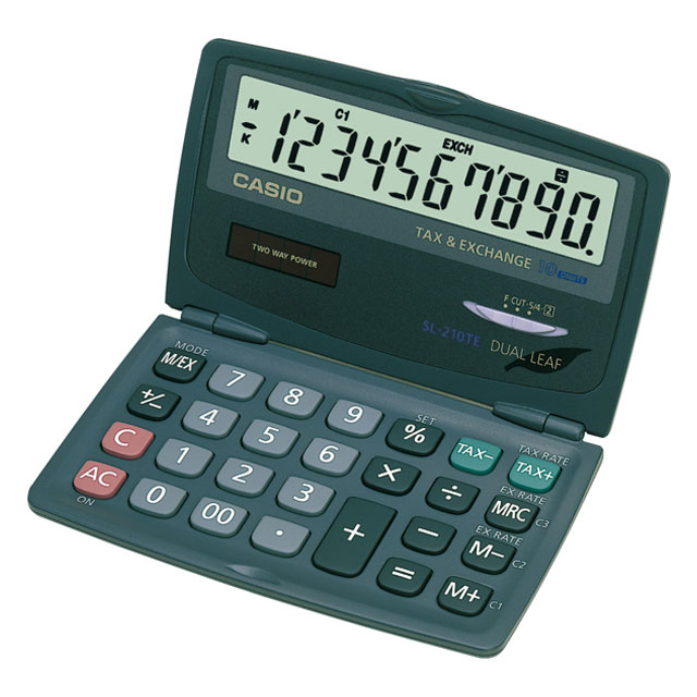 - Zsebszámológép nagy 10 számjegyű döntött kijelzővel
